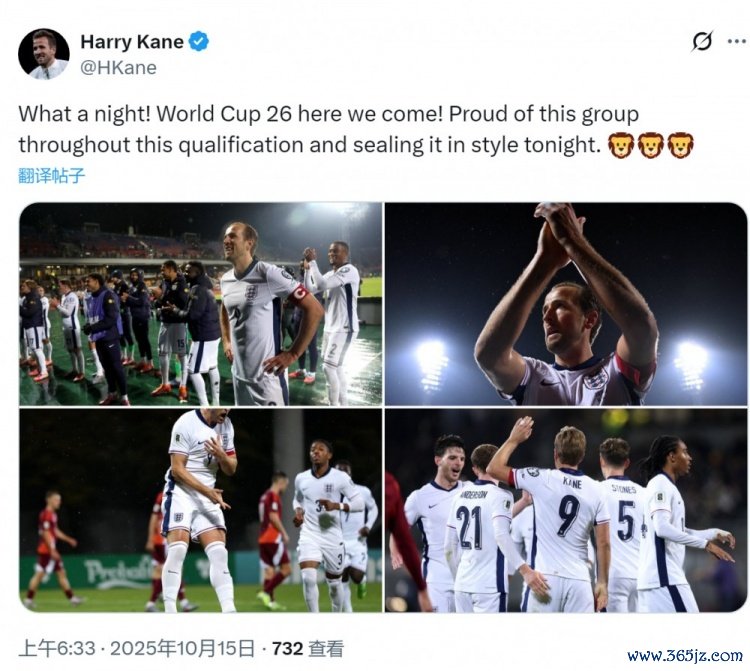 凯恩社媒晒出谢场的相片,并配文:“何等巧妙的整夜!2026年寰宇杯咱们来了!为球队谢世初赛中的说明感到高傲,今晚更所以精彩的奏效锁定席位!”