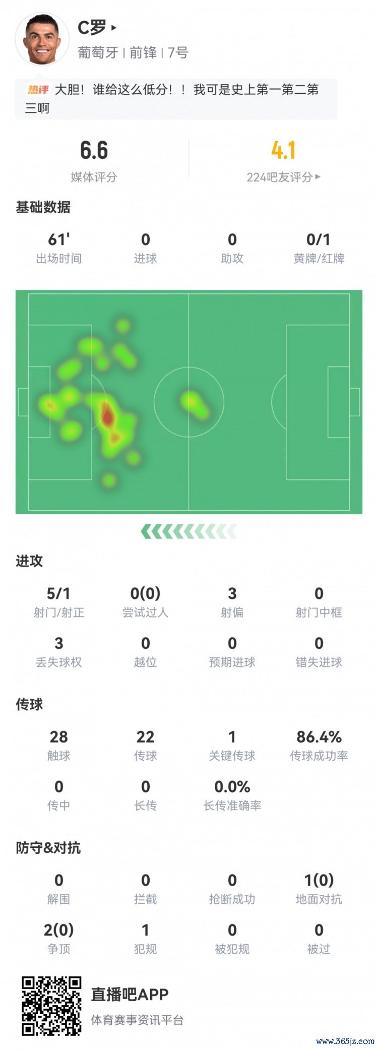 11月14日讯 本轮世初赛,葡萄牙0-2客负爱尔兰。此役C罗首发61分钟被红牌罚下,球员全场重心数据如下↓