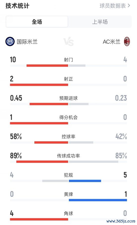 11月24日讯 意甲第12轮焦点战,海外米兰半场暂0-0AC米兰。