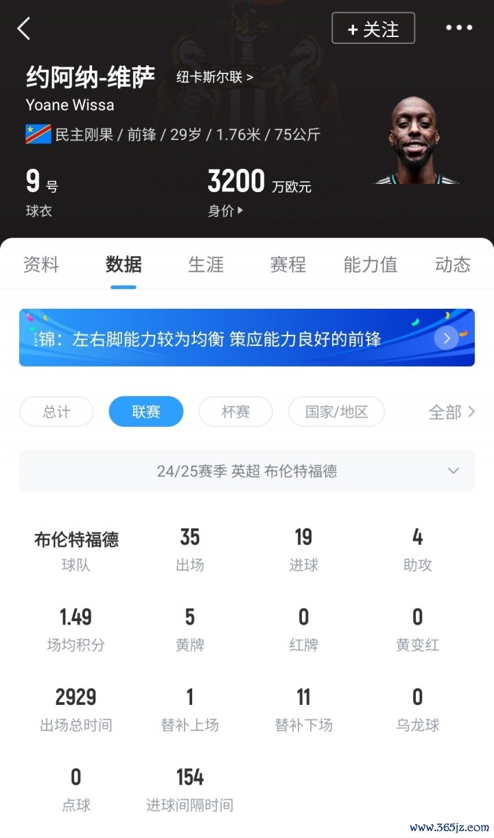 上赛季在布伦特福德,维萨出战35场比赛,打进19球4助,今夏为加盟纽卡,维萨一度罢训,最终纽卡破耗5500万镑的高价才到手签下球员。