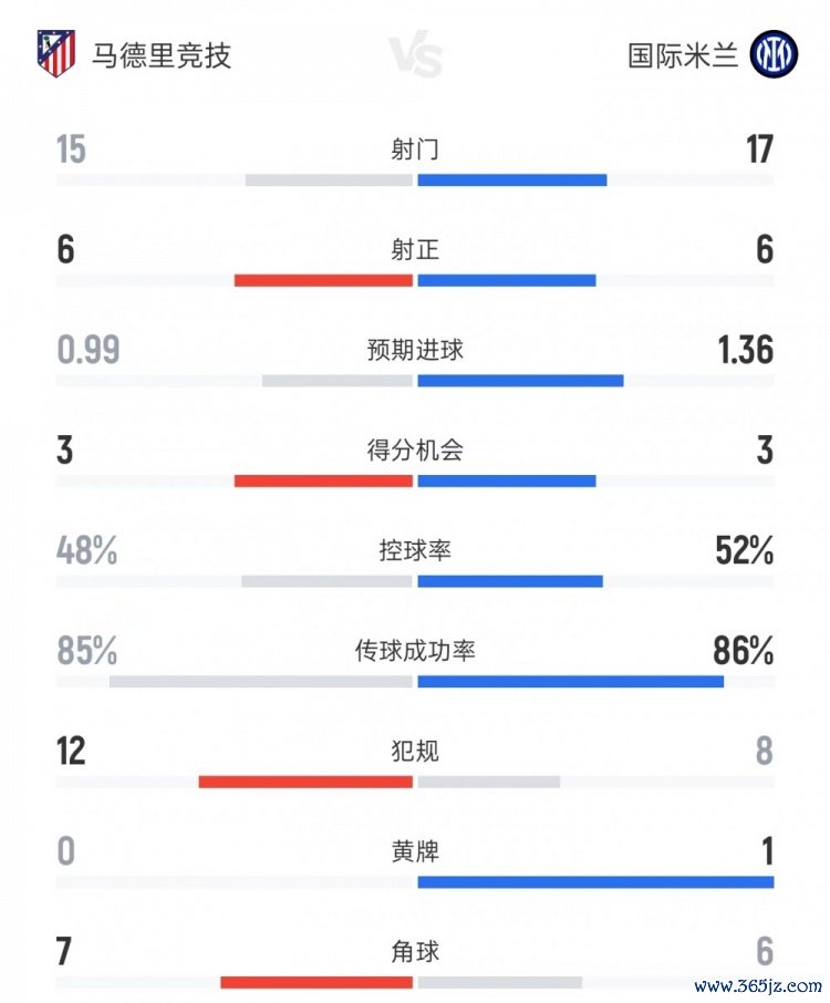 马竞vs国米全场数据: