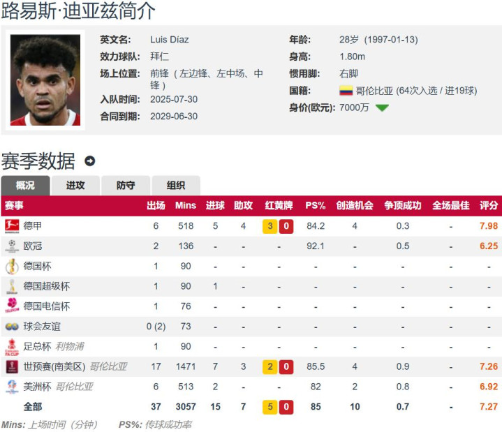 迪亚斯从英超到德甲,前6轮德甲沿路首发,打入了5球特朗普足球改名,还有4次助攻,场均参与进球1.5个,竟然恶果惊东说念主。迪亚斯的价值不仅在于参与进球的数据,而是拚命三郎的踢法,攻守兼备,斗志和姿色不错感染全队,这是利物浦当今最缺少的。