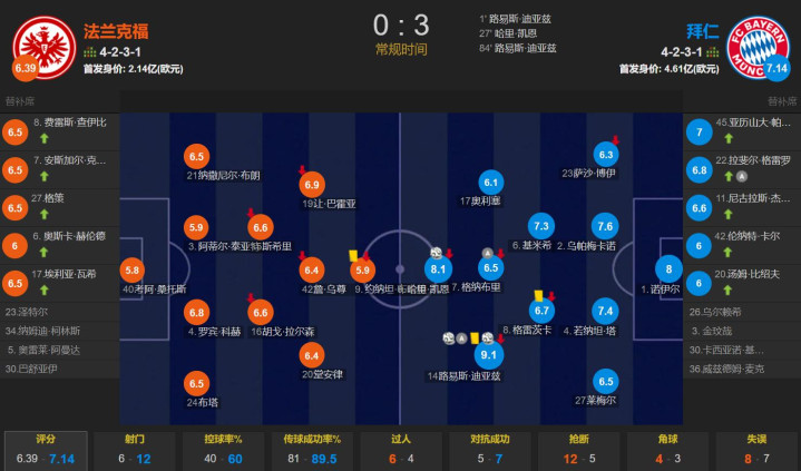 北京时分10月5日凌晨00:30,德甲第6轮,拜仁客场挑战法兰克福;同手艺进行的英超第7轮的比赛,利物浦客场挑战切尔西。拜仁客场3-0横扫法兰克福豪取本赛季全胜战绩;利物浦客场1-2遭切尔西绝杀,吞下各项赛事三连败的苦果。