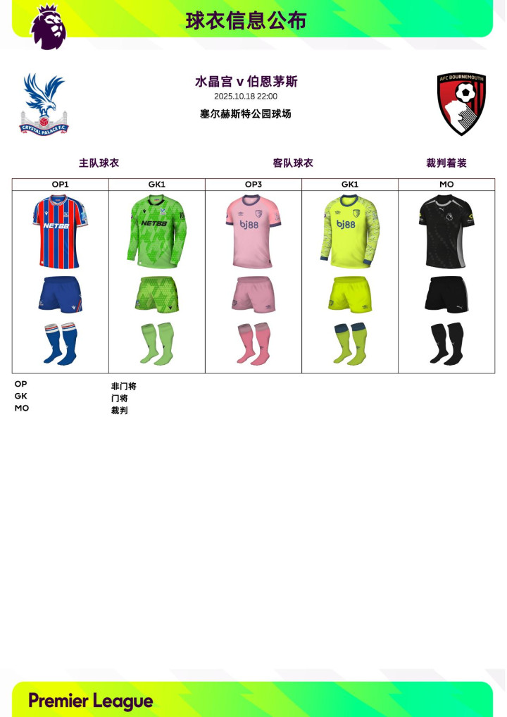 水晶宫上一轮不敌埃弗顿,名秩序6;伯恩茅斯上一轮打败富勒姆,名秩序4。