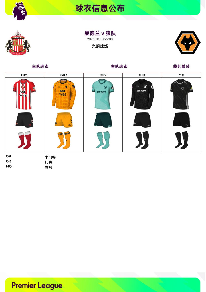 桑德兰上一轮不敌曼联,名秩序9;狼队上一轮战平布莱顿,名次垫底。