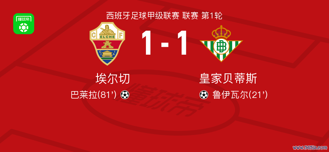 北京时间8月19日,西班牙足球甲级联赛第1轮,埃尔切主场迎战皇家贝蒂斯。比赛中,皇家贝蒂斯球员罗德里戈-里克尔梅送出助攻,鲁伊瓦尔到手破门,为球队获得超越。随后,埃尔切球员马蒂姆-内托送出助攻,巴莱拉收拢契机扳平比分。最终,两边以1-1持手言和。