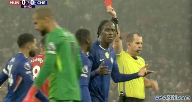 直播吧09月21日讯 英超第5轮,曼联主场迎战切尔西,开场第4分钟,守门员罗伯特桑-切斯出击放倒姆伯莫,被直红罚下。