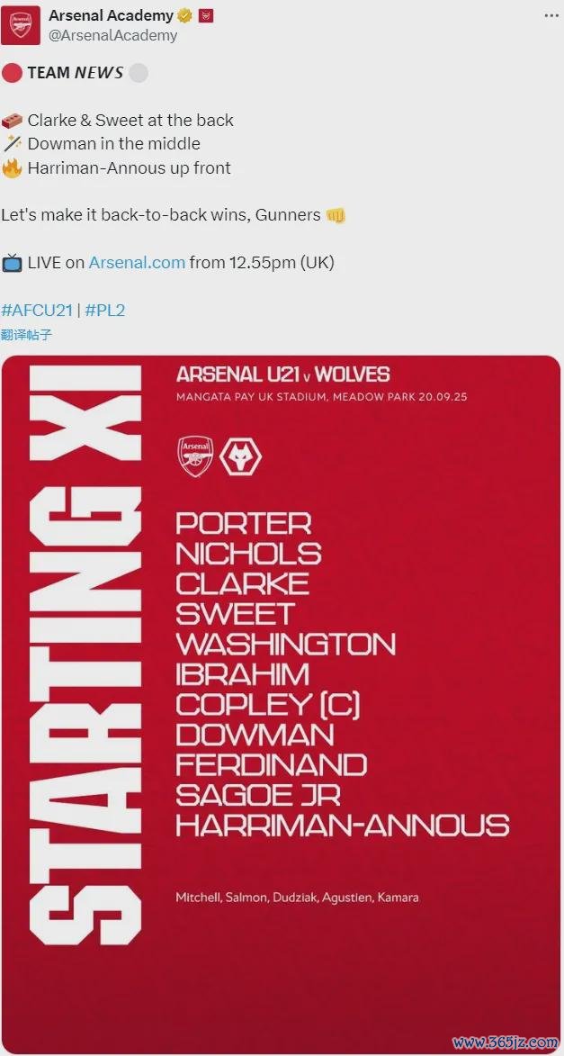 北京时分周六晚,谈曼首发出战了阿森纳u21对阵狼队的英超决策队比赛。而阿森纳对曼城的比赛在周日晚……