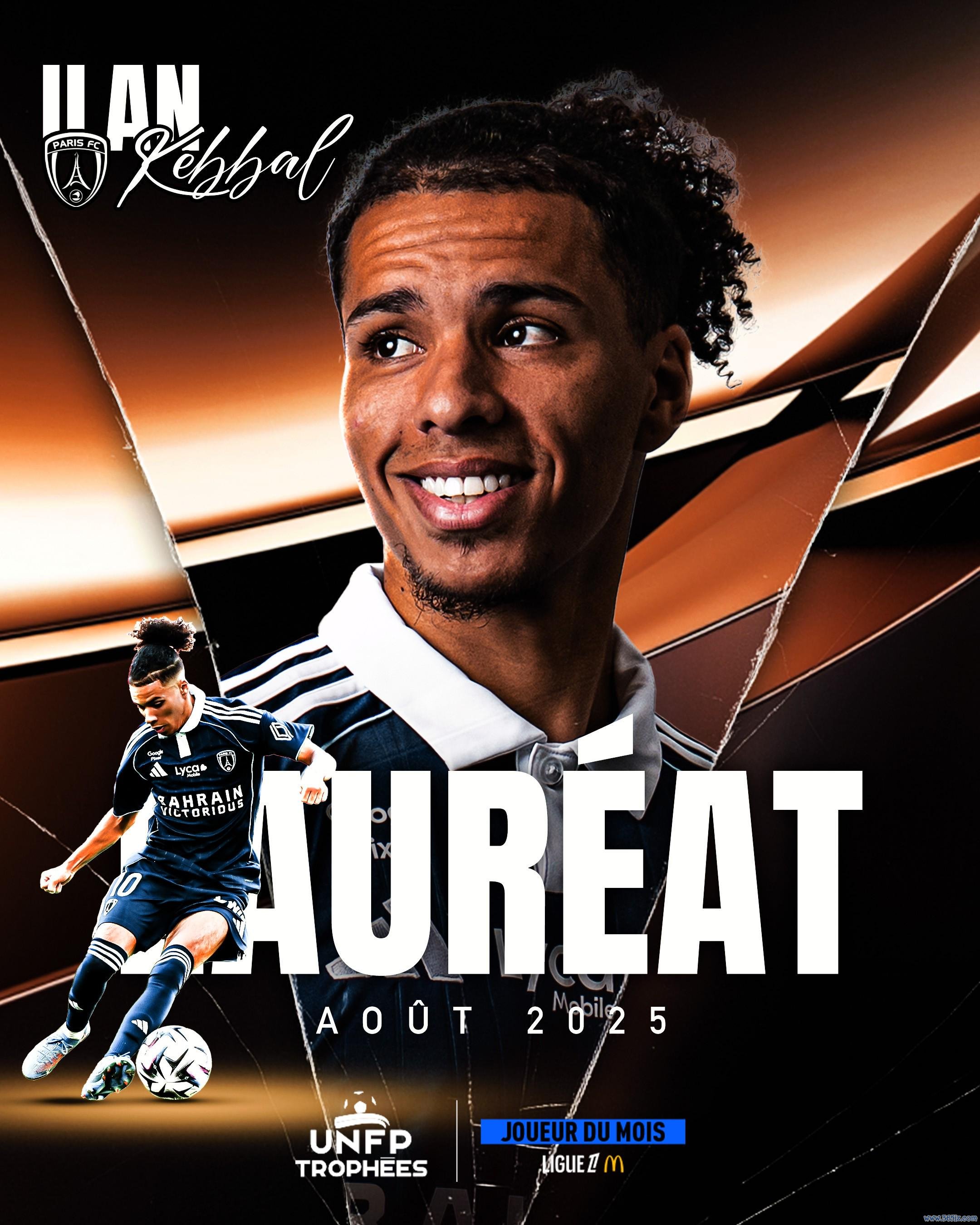 官方音问,巴黎FC中场凯巴尔当选法甲8月最好球员。
