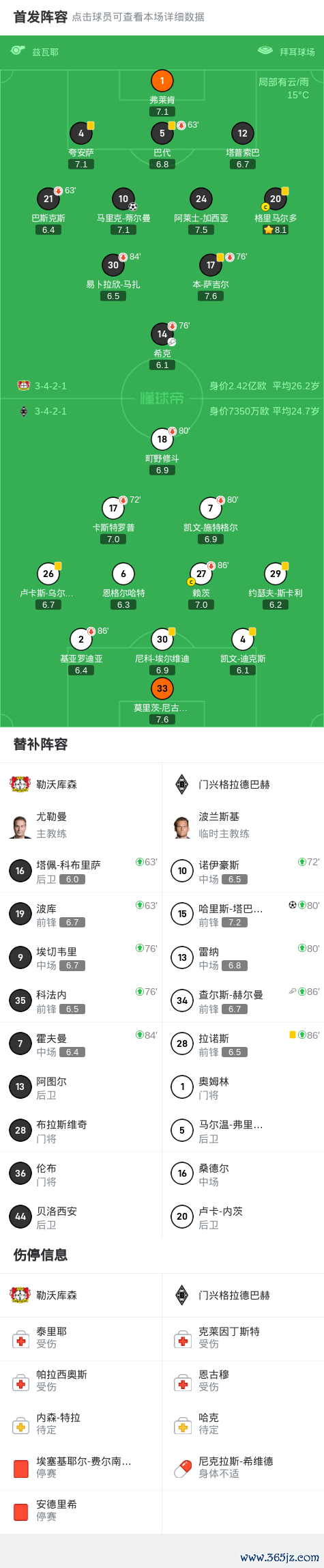 第71分钟,冲突僵局,马里克-蒂尔曼推射破门,勒沃库森1-0