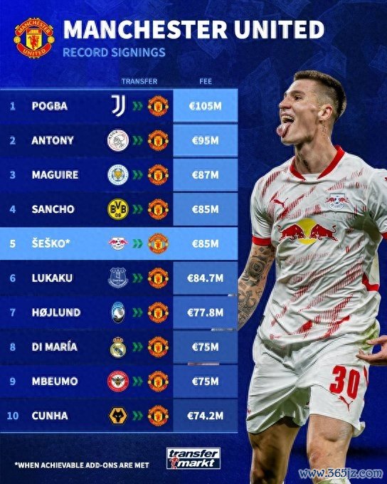 曼联将向RB莱比锡支付运行转会费7650万欧,外加850万欧的附加条目,这些附加条目据信险些已成定局。