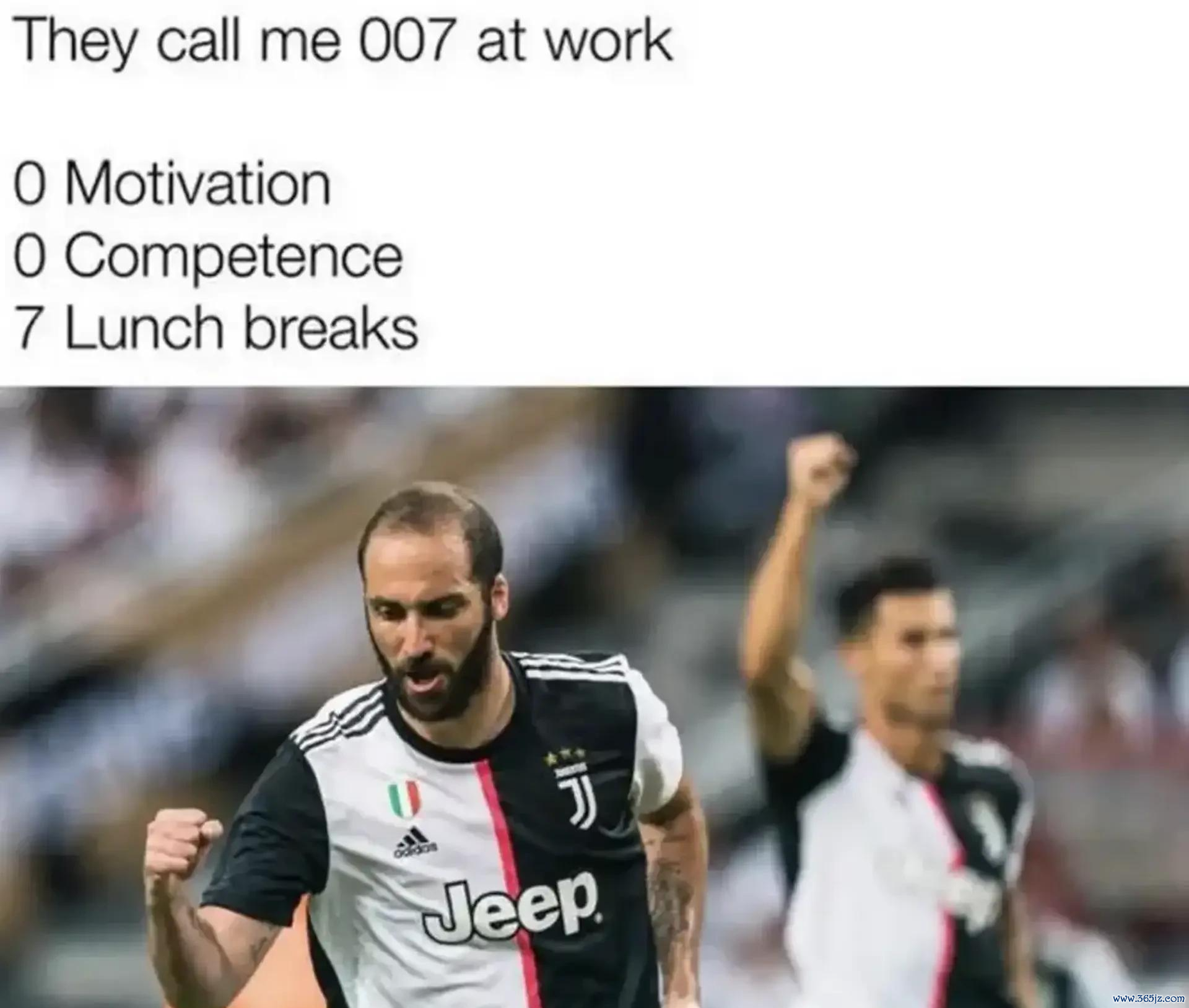 真谛真谛的是,桑乔并非足球圈“007特工”梗的首位受害者。KnowYourMeme网站提到,尤文图斯工夫的伊瓜因是最早的改编案例之一——但其时他的数据是0球0助攻。