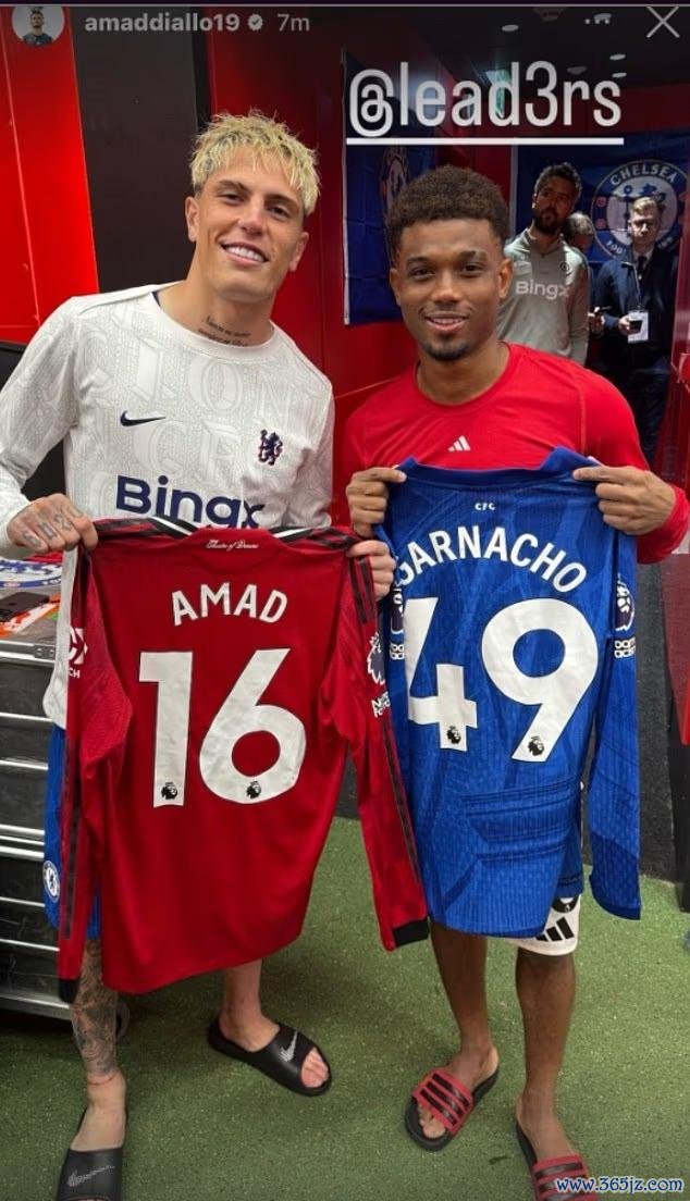 阿玛德在曼联2-1驯顺切尔西的英超比赛后,共享了一张与前队友加纳乔的合照,随后便收到了渊博口角。