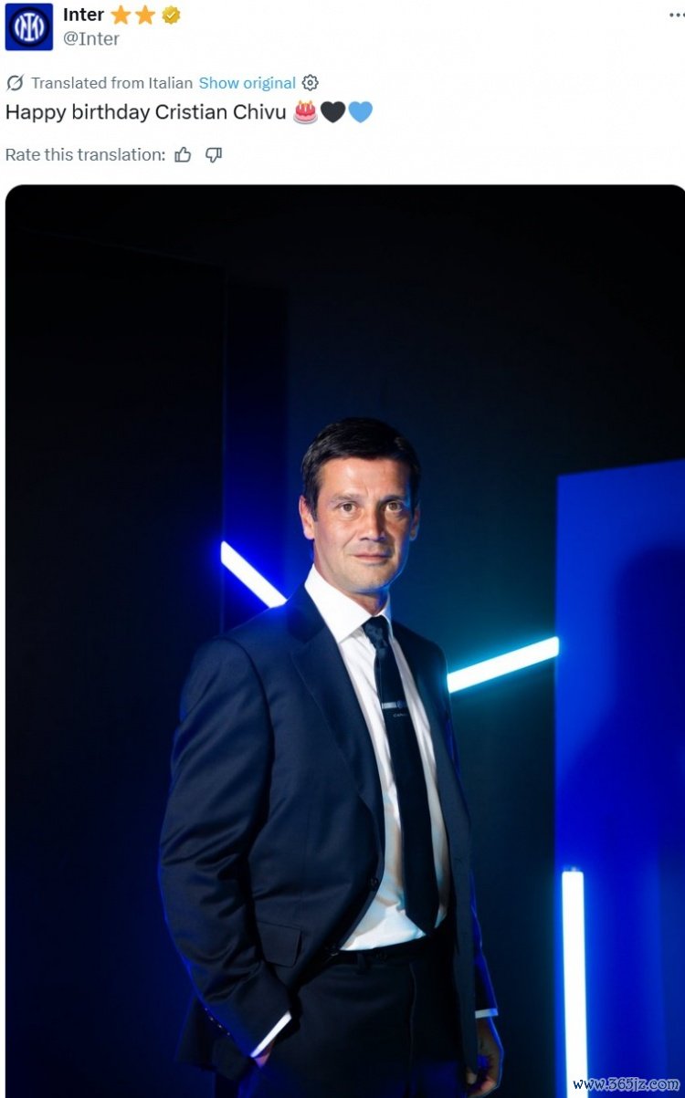 10月26日讯 今天是国米主帅都沃45岁生辰,国米官推也晒照为其奉上生辰道喜。