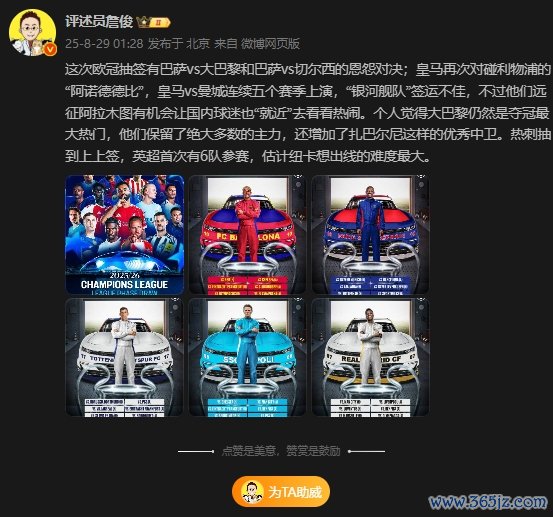 08月29日讯 25/26赛季欧冠抽签狂妄,挑剔员詹俊发表点评。