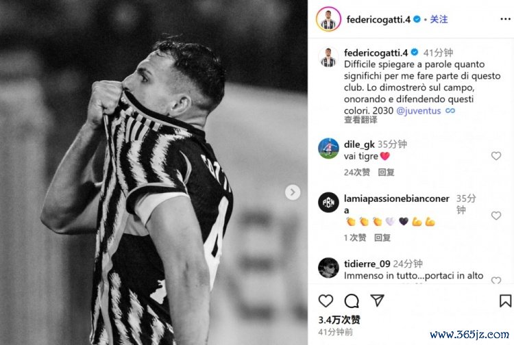 加蒂晒出我方亲吻胸前尤文队徽的相片,并配文:“很难用讲话来抒发,成为这家俱乐部的一员对我来说有多紧迫。我会在球场上领略这少许,为这支球队捍卫荣耀。@尤文图斯,2030直到无限 ♾️”