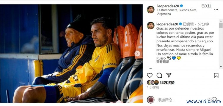 10月9日讯 博卡后生主帅鲁索死亡,帕雷德斯社媒发文悲伤。