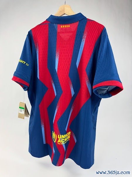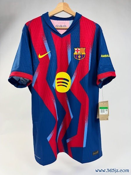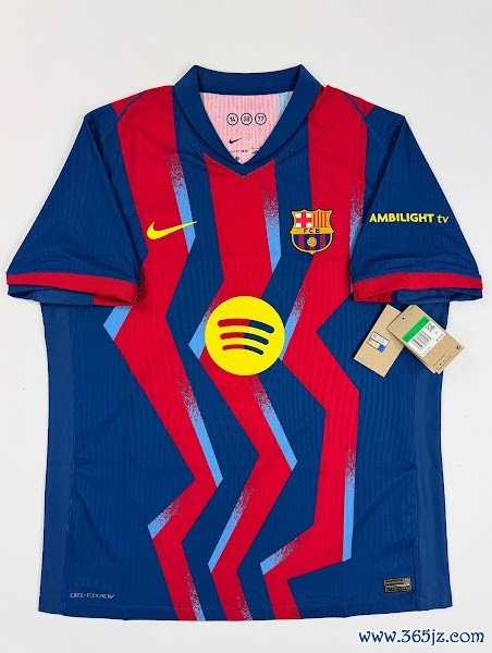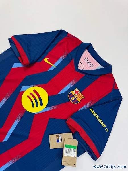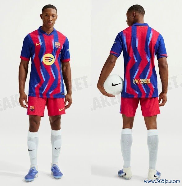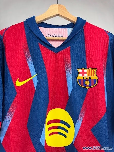 与20年前的经典蓝红条纹不同,巴塞罗那2025-26赛季第四球衣禁受了蓝色和红色的锯齿形条纹,并带有浅蓝色的图形元素。