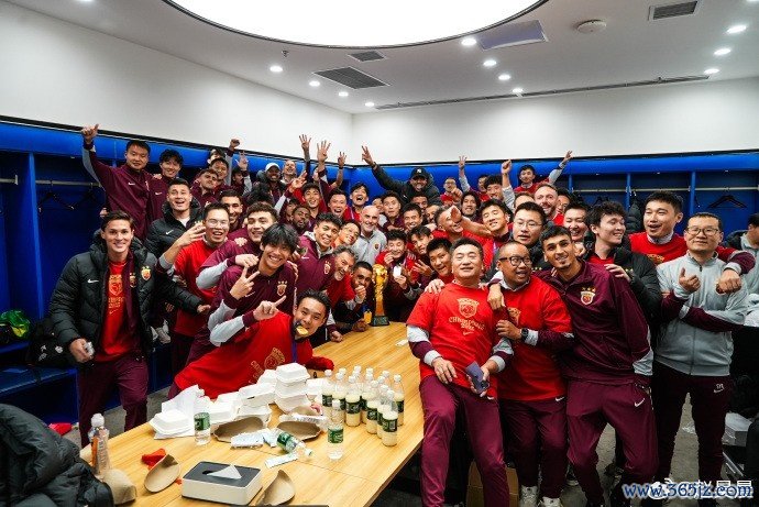 赛后,上海海港新闻官赵昊晨晒出了更衣室夺冠合影。